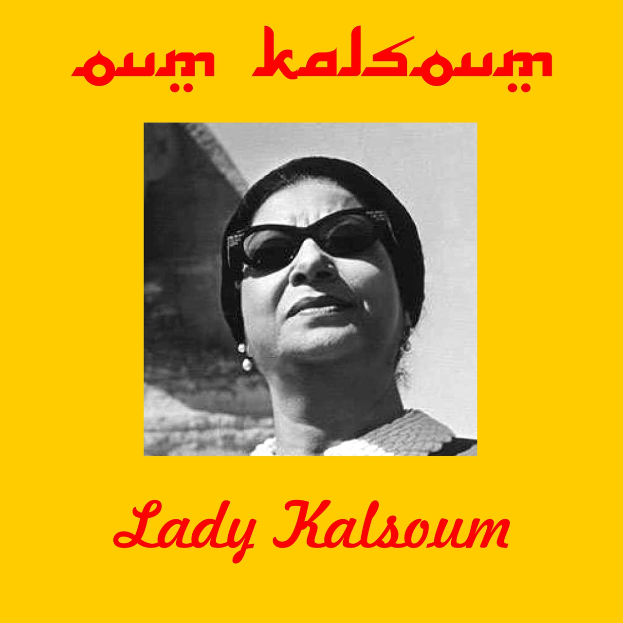 The image on the right has what looks like Arabic at the top, but it’s actually “Oum Kalsoum” written in a font designed to mimic Arabic. The “u,” “m,” and “k” are not actual Arabic letters, but the others could pass, including the squiggle used to suggest the “s.” You can see that same letter properly used on the left.