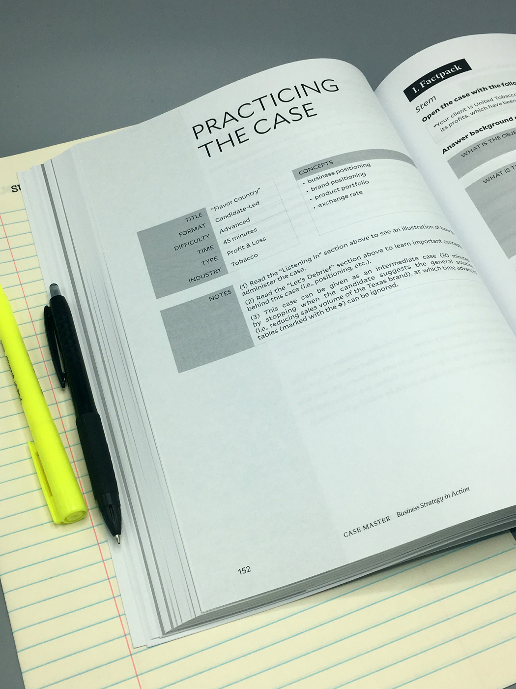 This first edition of Case Master has been under production for about a year, and the final book is a game-changer in consulting interview preparation. The book is beautifully designed to help readers easily navigate through its many concepts, tips, and exercises, and its highly organized structure makes practicing case interviews with partners highly effective.